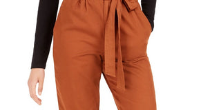 Bar III Women's Becca Tilley X Paperbag Waist Pants Orange Size Small