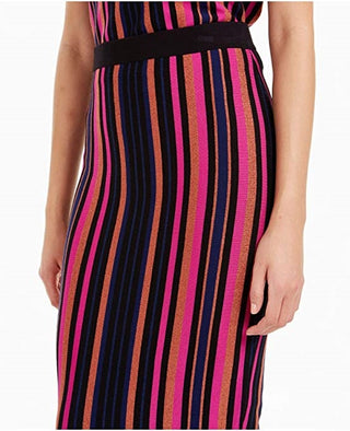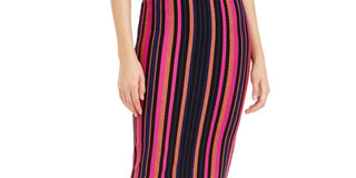 Bar III Women's Glitter Striped Below The Knee Pencil Skirt Pink Size Medium