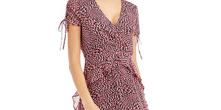 Bar III Women's Printed Ruffled Mini Dress Dark Red Size 10