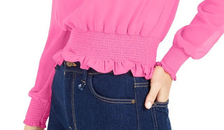 Bar III Women's Becca Tilley X Sheer Sleeve Smocked Waist Top Pink Size Medium