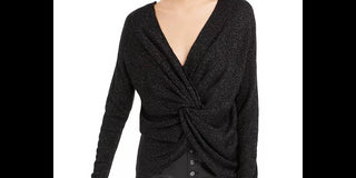 Bar III Women's Glitter Wear-2-Ways Sweater Black Size Small