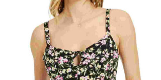 Bar III Women's Blouse Floral Smocked Back Cropped Top Black Size X-Small