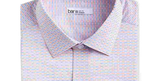 Bar III Men's White Geometric Collared Slim Fit Stretch Dress Shirt Natural Size 14.5- 32/33