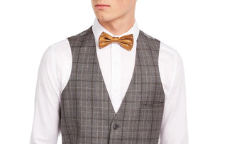 Bar III Men's Slim-Fit Gray/Brown Plaid Suit Separate Vest Gray Size X-Large