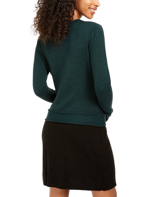 BCX Juniors' Textured Side Ruched Mock Neck Sweater Dark Green Size Small