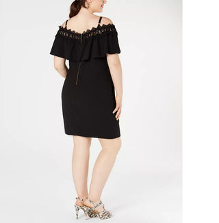 BCX Women's Plus Trendy Off-The-Shoulder Crochet Dress Black Size X-Large