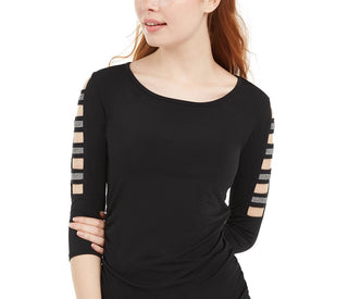 BCX Juniors' Rhinestone-Embellished Ladder-Trim Top Black Size Small