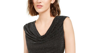 BCX Junior's Metallic Ruched Tulip Hem Mock Neck Dress Grey Size Large