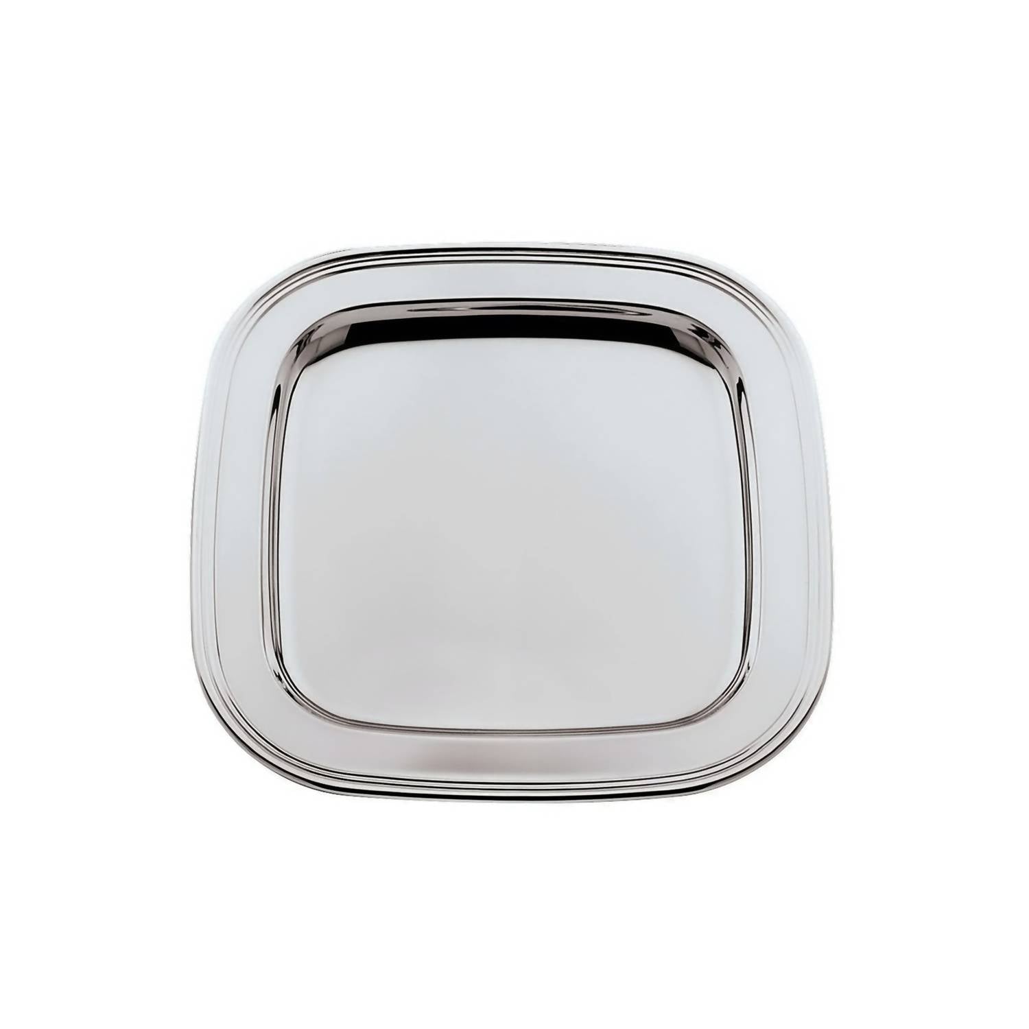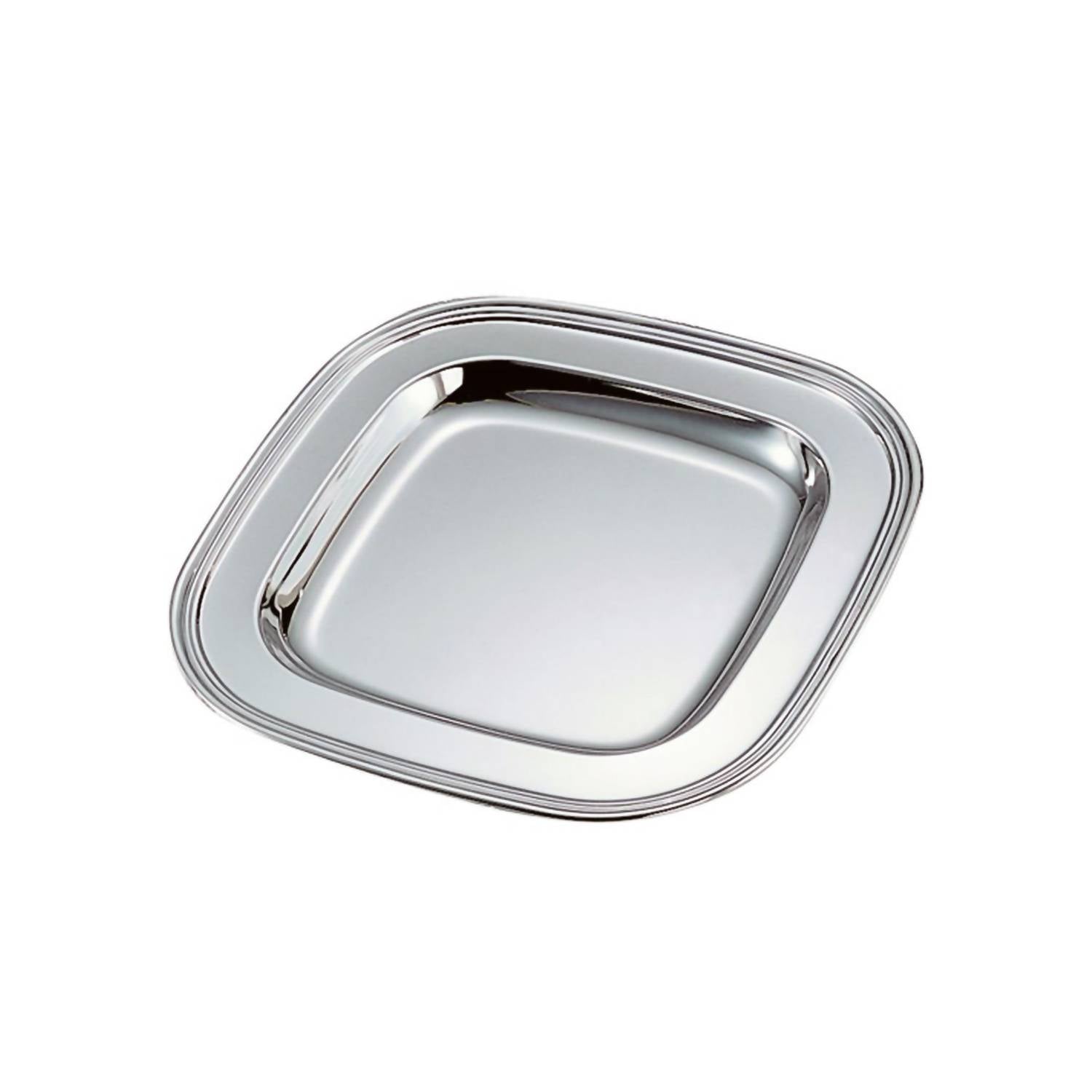 Presenting the Silver Square Tray by Creative Gifts International, where modern aesthetics meet timeless functionality. Crafted from solid metal and elegantly nickel-plated, this tray boasts a radiant sheen perfect for any occasion. Dimensions: 9.5" L x 9.5" W x 0.75" H. Despite its durable, non-tarnishing finish, we recommend hand washing to maintain its brilliance. Ideal for serving or as a stylish accent piece, each tray is packaged in a gift box, perfect for gifting. Color: Silver.