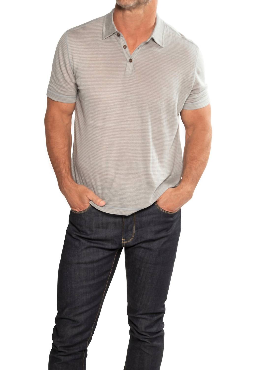 Embrace refined comfort with the Linen Stripe Polo Shirt by ON THIS DAY, ideal for spring and summer wear. This men's polo features short sleeves, a collar neckline, and classic button closure, all crafted from 100% linen. Its blue slate hue with a stripe pattern adds a sophisticated touch to casual ensembles. The shirt is distinguished by satin-stitched logo embroidery, ensuring a timeless appeal.