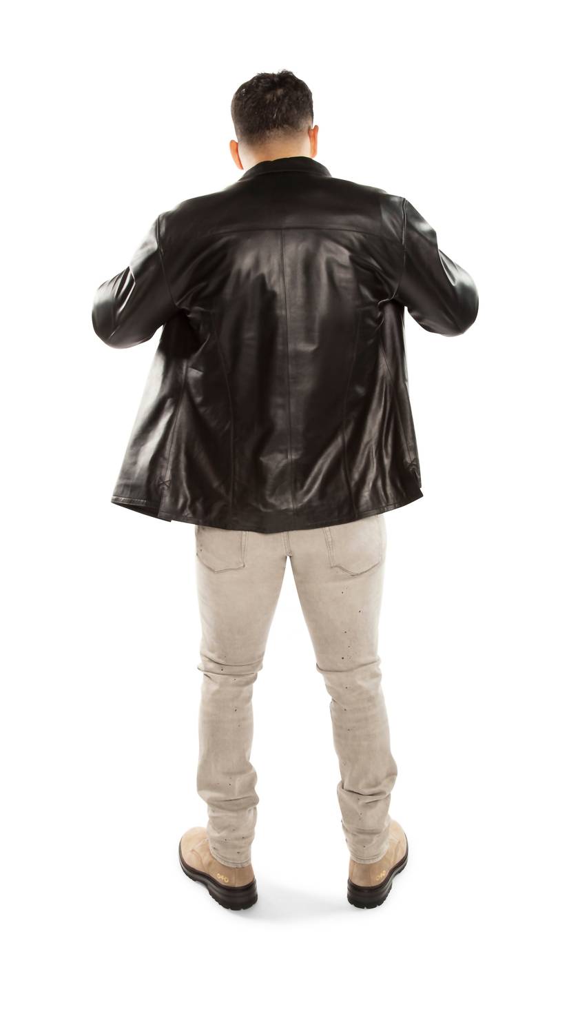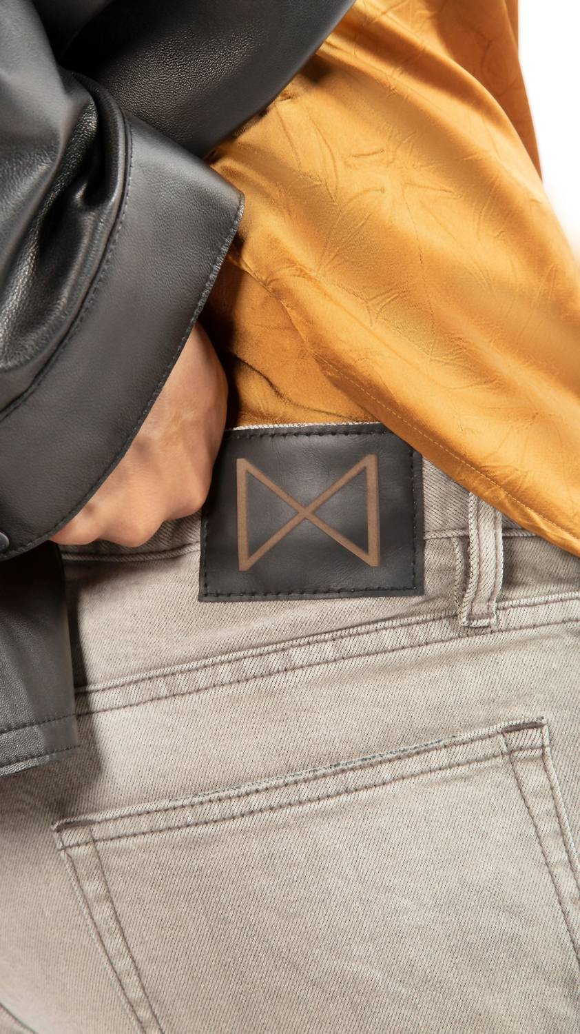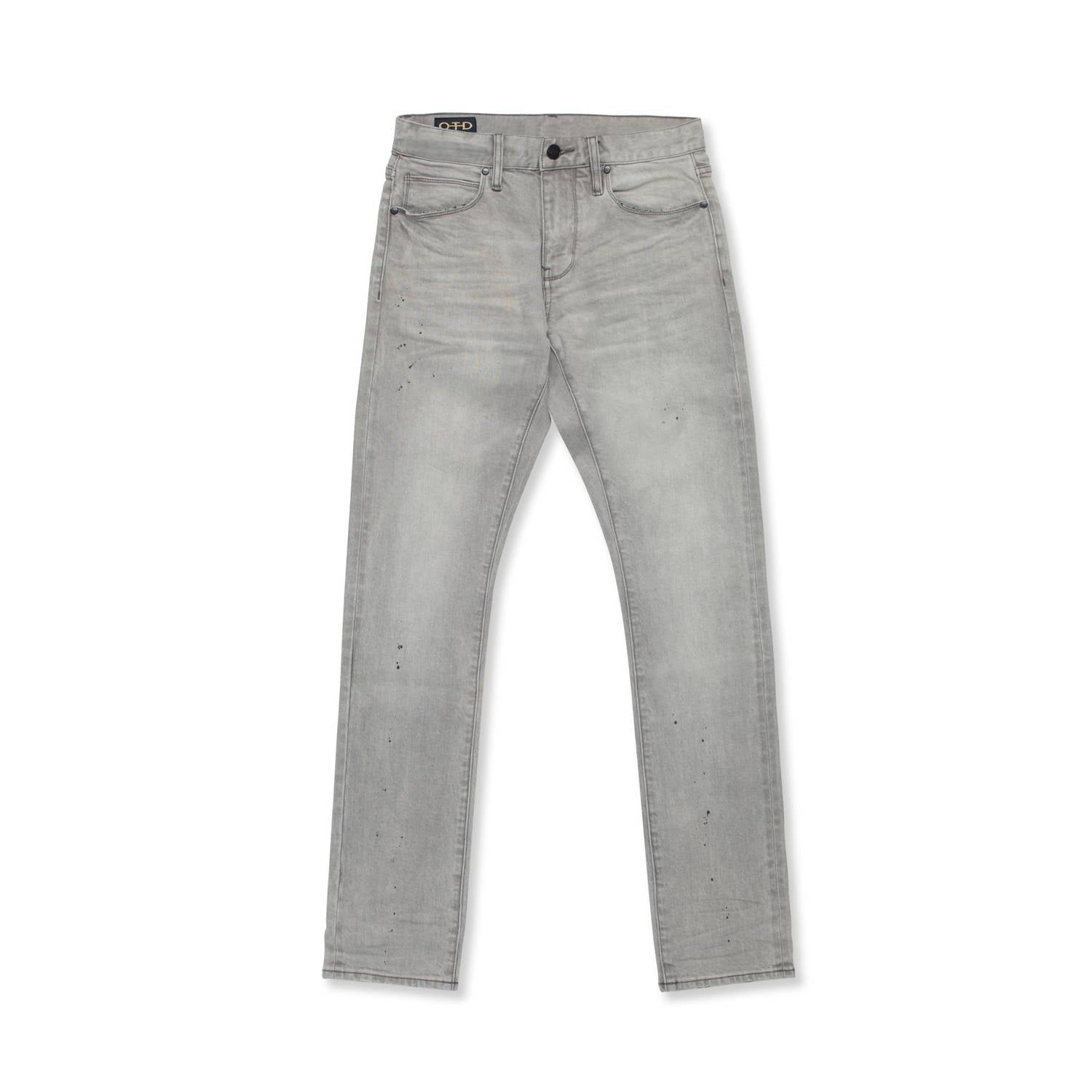 Crafted in light grey with a unique subtle paint splatter for an authentic touch. These men's jeans are made from European cotton-stretch denim, featuring a slim fit and skinny leg for a sleek silhouette. Closure is provided by a convenient zip closure, and pockets offer functional style. These jeans are designed with a gently faded, character-rich finish that will personalize with wear.