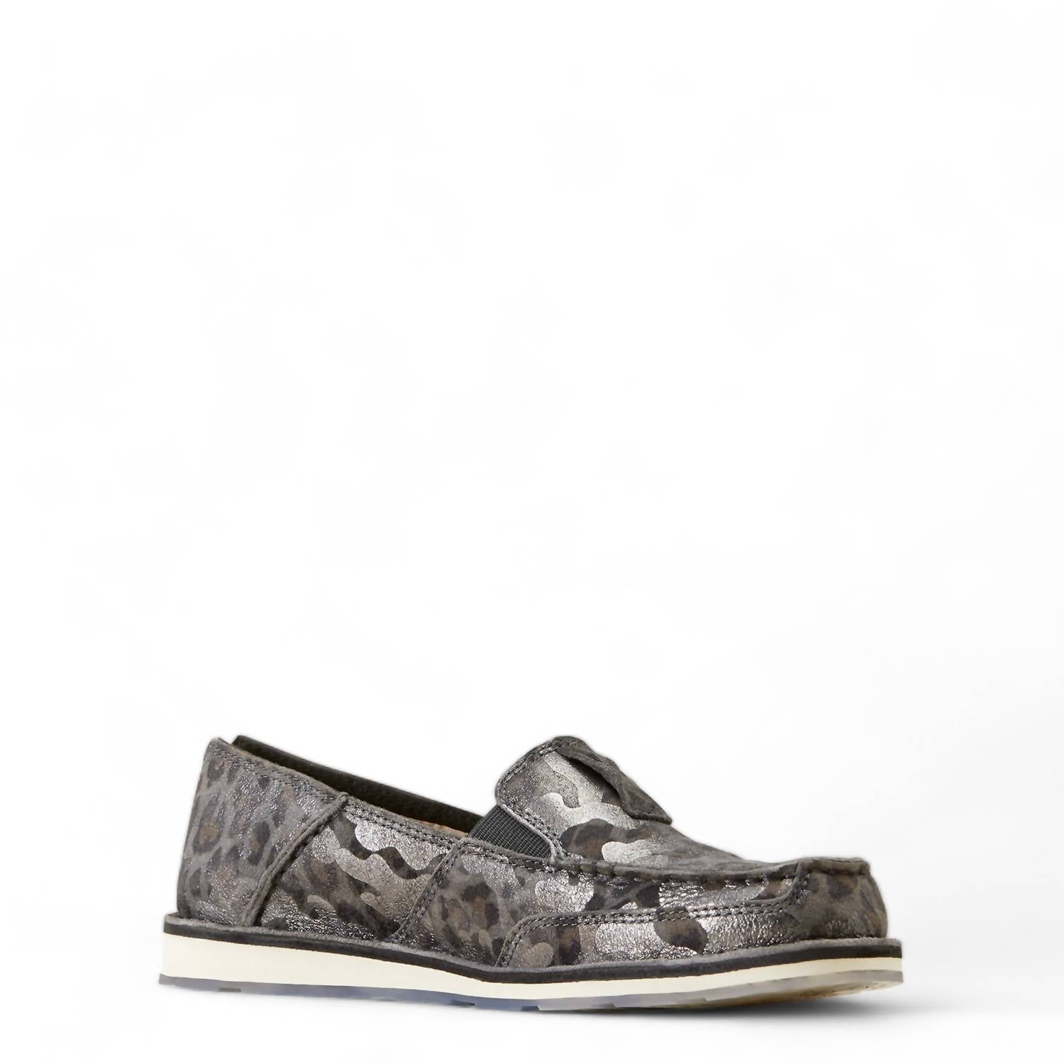 A preppy yet feminine take on the classic loafer.Feature a mixed-material upper, combining suede and leather for a stylish look. They are equipped with a lightweight EVA midsole that effectively absorbs shock. The clear Duratread™ sole, adorned with a unique graphic, adds both durability and flair. With stitch-out construction and side stretch elastic panels, these shoes offer ease of wear. They have a 2" shaft height, a flat, no-heel design, and a moc toe. They are true to size.