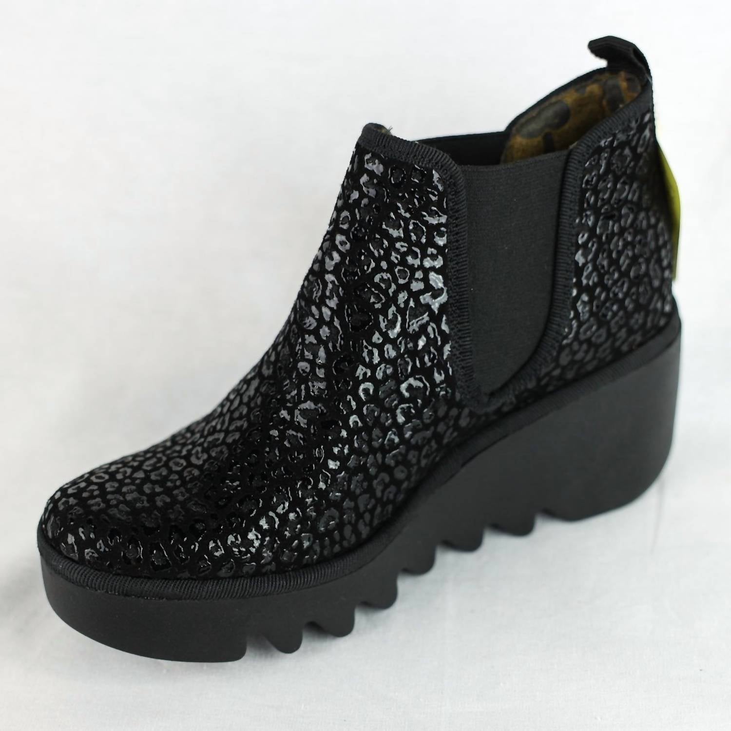 Timeless wedges that will be relevant season after season. The Women's Byne Wedge Ankle Boots by FLY LONDON are a stylish addition to your footwear collection, featuring convenient double elastic goring for effortless wear. Made with a leather upper, synthetic lining, and a durable rubber sole, these wedge booties offer both comfort and longevity. The wedge heel provides a moderate 3-inch lift, adding elegance to your stride. Care for them by cleaning with a damp cloth and using a suitable leather conditioner, avoiding direct heat to preserve their quality.