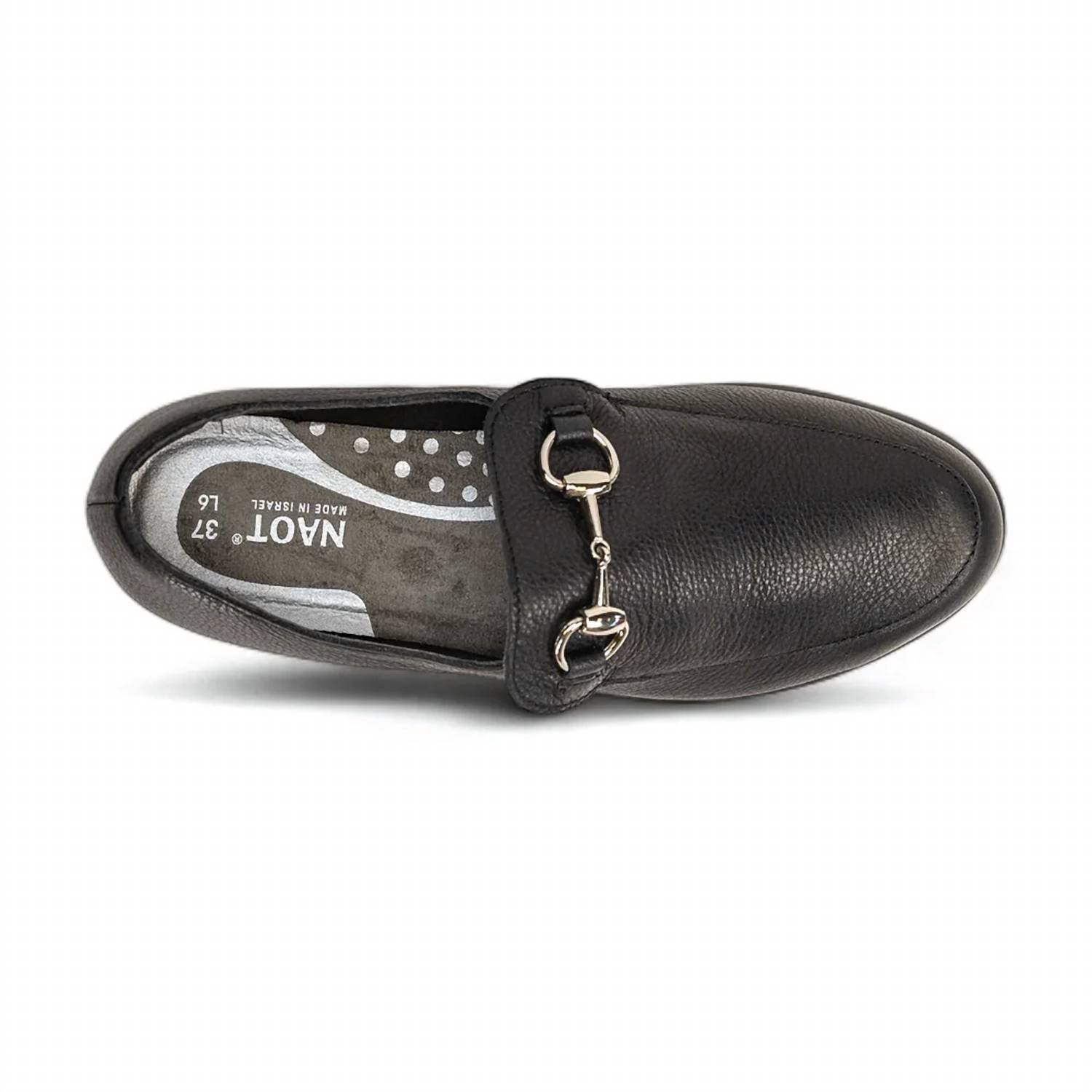 A preppy yet feminine take on the classic loafer. Experience timeless elegance with the Women's Bentu Buckled Loafer by NAOT, crafted from soft black leather for a sophisticated look. This loafer is fitted with Naot's removable cork and latex footbed, and a polyurethane sole designed to enhance grip for anti-slip performance. Its classic design combines with a 1.5" heel, making it ideal for workwear. These loafers run true to size, with half sizes advised to size up, and they are orthotic friendly.