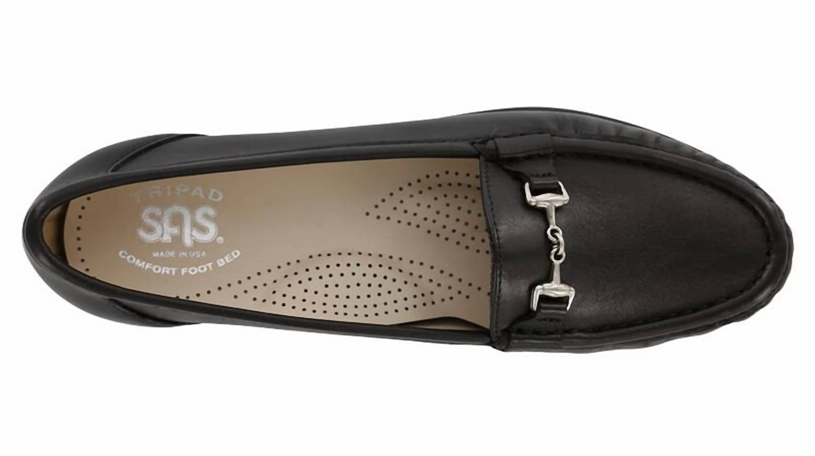 A preppy yet feminine take on the classic loafer. Discover the Women's Metro Slip On Loafer by SA, expertly crafted with a genuine moccasin construction. Made from soft leather, this loafer wraps comfortably around the foot and features an almond toe shape. Designed for all-day comfort, it includes a removable cushioned footbed and a shock-absorbing sole supported by a flat 1-inch heel. Perfect for the fall season, this stylish footwear is both elegant and practical, accentuated by a polished premium adornment on top.