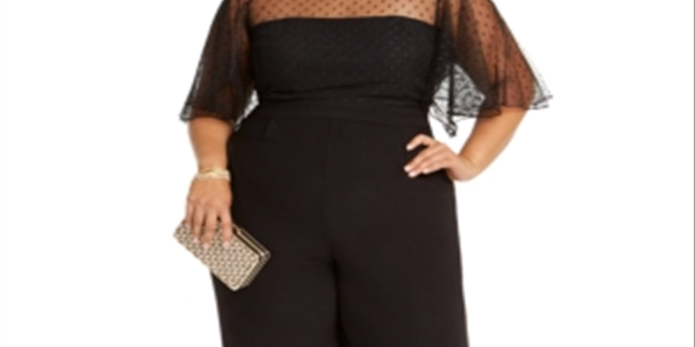 Betsey Johnson Women's Plus Illusion Trim Wide Leg Jumpsuit BlackSize 16W