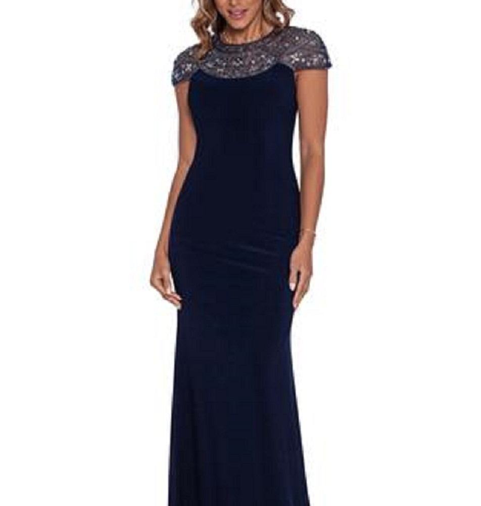 Betsy & Adam Women's Beaded Gown Blue Size 14