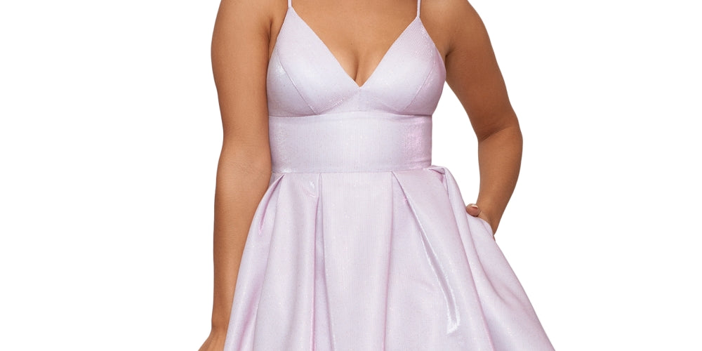 Sparkle and shine for the party in this shimmering Betsy & Adam cocktail dress| a gorgeous option with allover shimmer and a deep V-neck.| Approx. 36-3/4 long from high point shoulder to hem. Length is based on a size 4 and varies 1/4 between sizes| Fitted through the chest and waist; flared and flowing skirt| V-neck; Fit & flare silhouette| Back zip closure| Fixed spaghetti straps