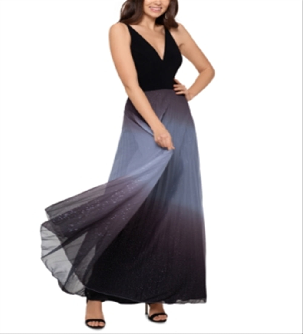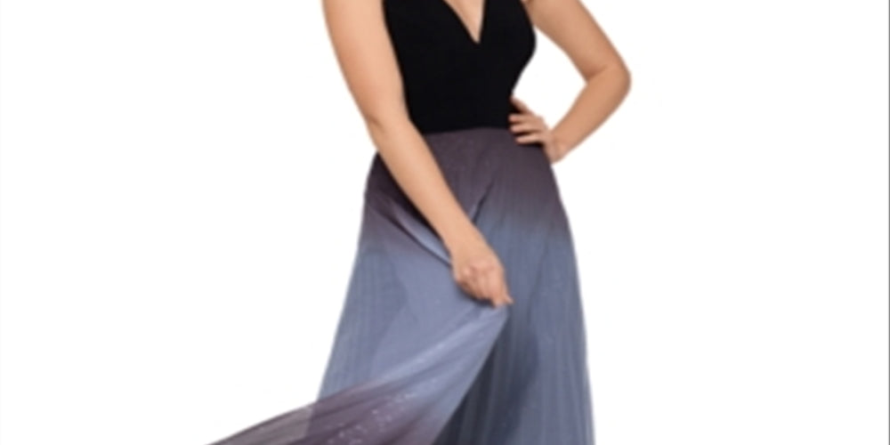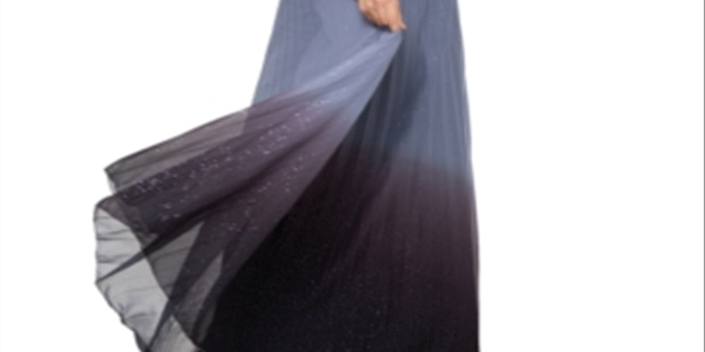 Pleated glitter skirt| Hidden back zipper with hook-and-eye closure| V-neck; Gown silhouette | |