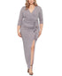 Betsy & Adam Women's Metallic Ruched Long Sleeve Gown Gray Size 22W