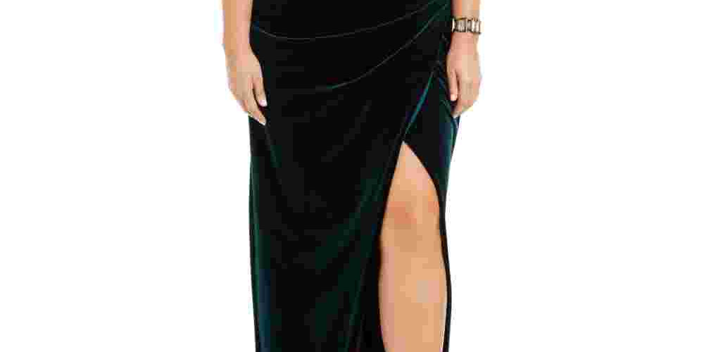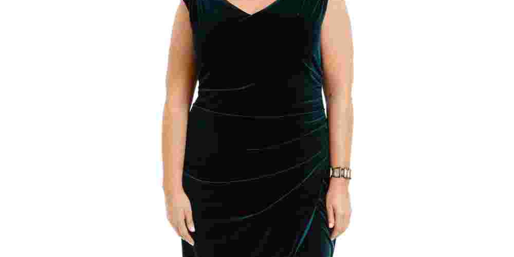 Betsy & Adam Women's Plus Ruched Velvet Gown Green Size 14W