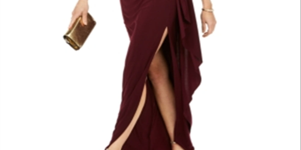 Betsy Adam Womens Slitted Solid Sleeveless Crew Neck Full-Length Empire Waist Evening Dress Red Size 10