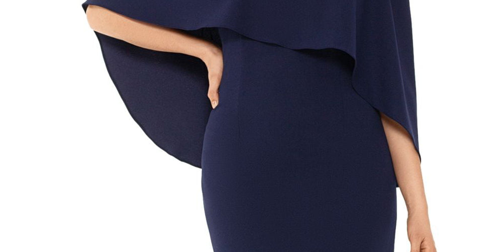 Betsy Adam Women's Zippered Overlay Sleeves Illusion Neckline Above the Knee Evening Body Con Dress Navy Size 4