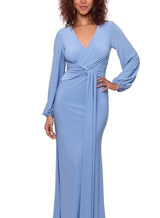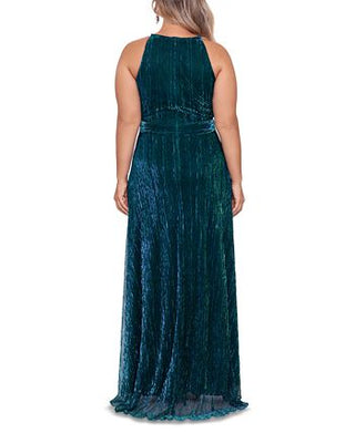 Betsy & Adam Women's Drape Back Crinkled Gown Blue Size 16W
