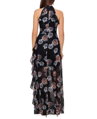 Betsy & Adam Women's Floral Print Ruffled Halter Gown Green Size 8