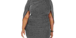 Betsy & Adam Women's Plus Size Metallic-Knit Cape Dress Black Size 20W