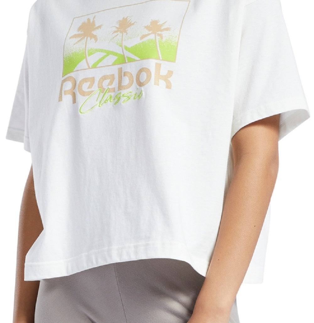 Workout-ready comfort with a vacay vibe| This Reebok T-shirt gives you an oversized fit and the soft feel of all-cotton jersey with a fun graphic at the front|