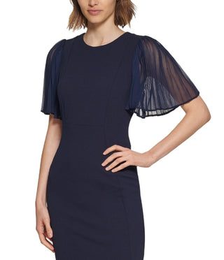 Calvin Klein Women's Chiffon Sleeve Sheath Dress Blue Size 4