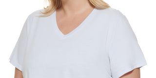 Calvin Klein Women's Logo Patch V Neck T-Shirt Blue Size 1X