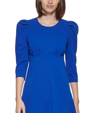 Calvin Klein Women's Puff Shoulder A-Line Dress Blue Size 4 Petite