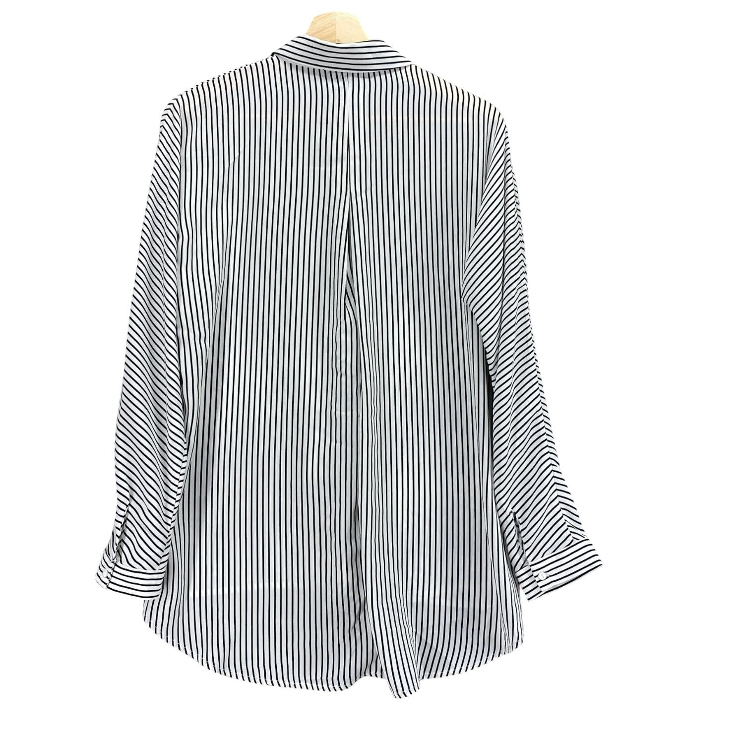This button down shirt is comfortable yet polished. Elevate your wardrobe with the Women's Striped Button Up by BLACK TAPE, a timeless piece in a chic white and navy stripe. This long sleeve shirt features a classic collar and a convenient button closure for easy wear. Ideal for any occasion, it's crafted with meticulous attention to detail. Care: Machine wash to keep it looking its best.