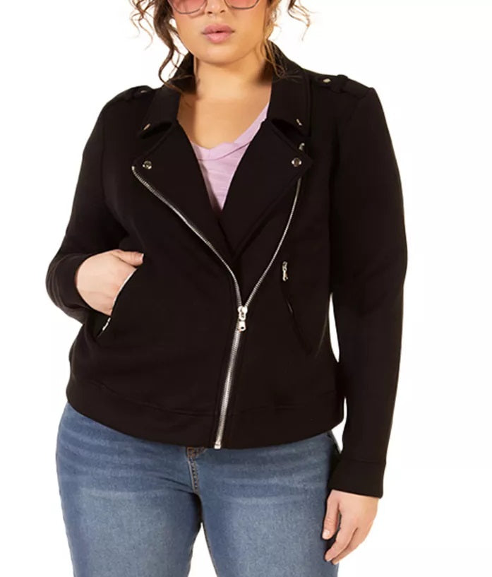 Black Tape Women's Stretch Knit Moto Jacket Black Size 3X