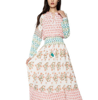 Black Tape Women's Mixed Print Smocked Waist Maxi Dress White Size Medium