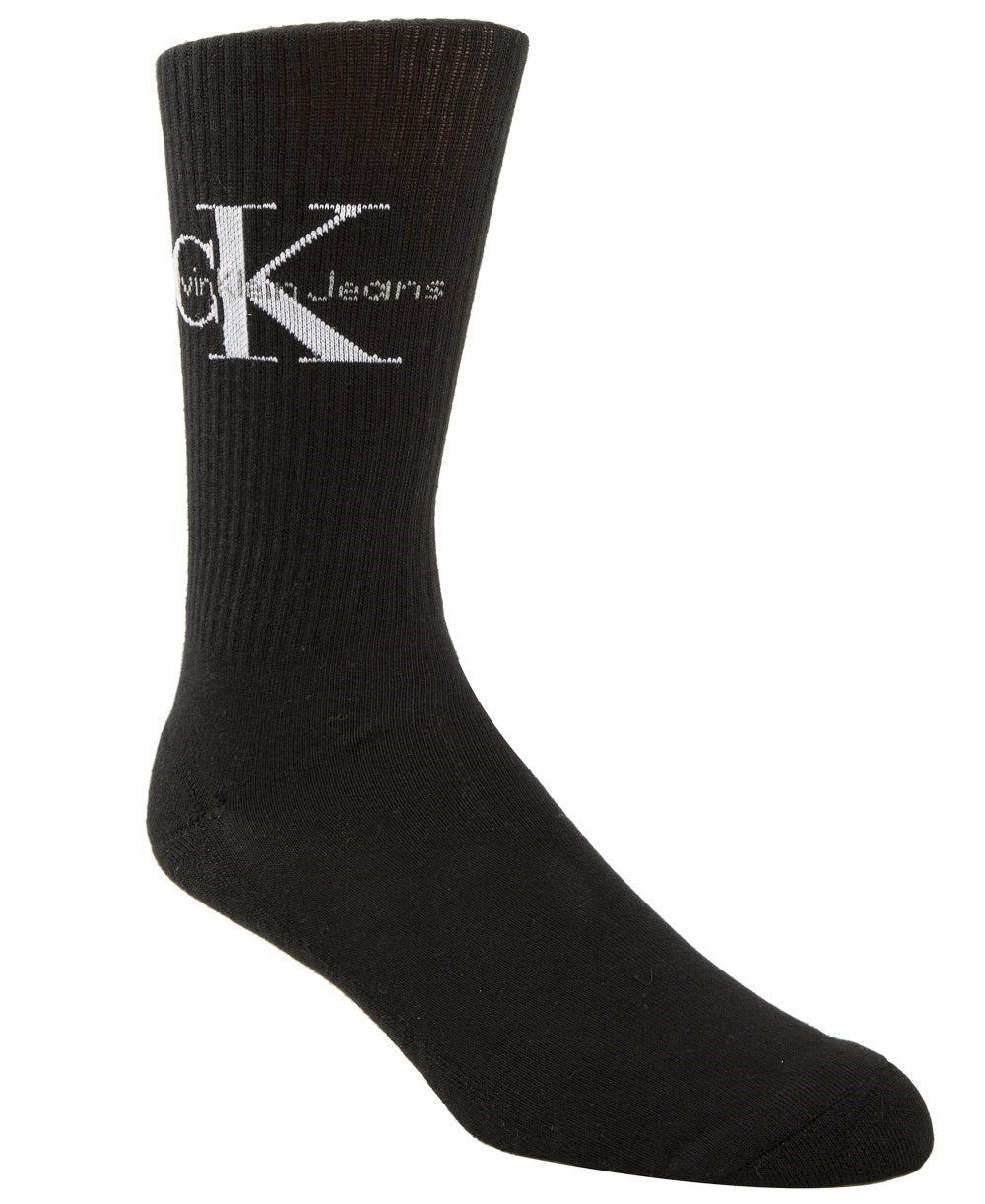Calvin Klein Men's Ribbed Logo Crew Socks -Black Size 7-12