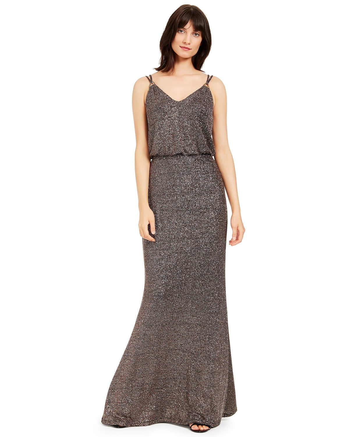 Calvin Klein Women's Metallic Blouson Gown Charcoal Size 8