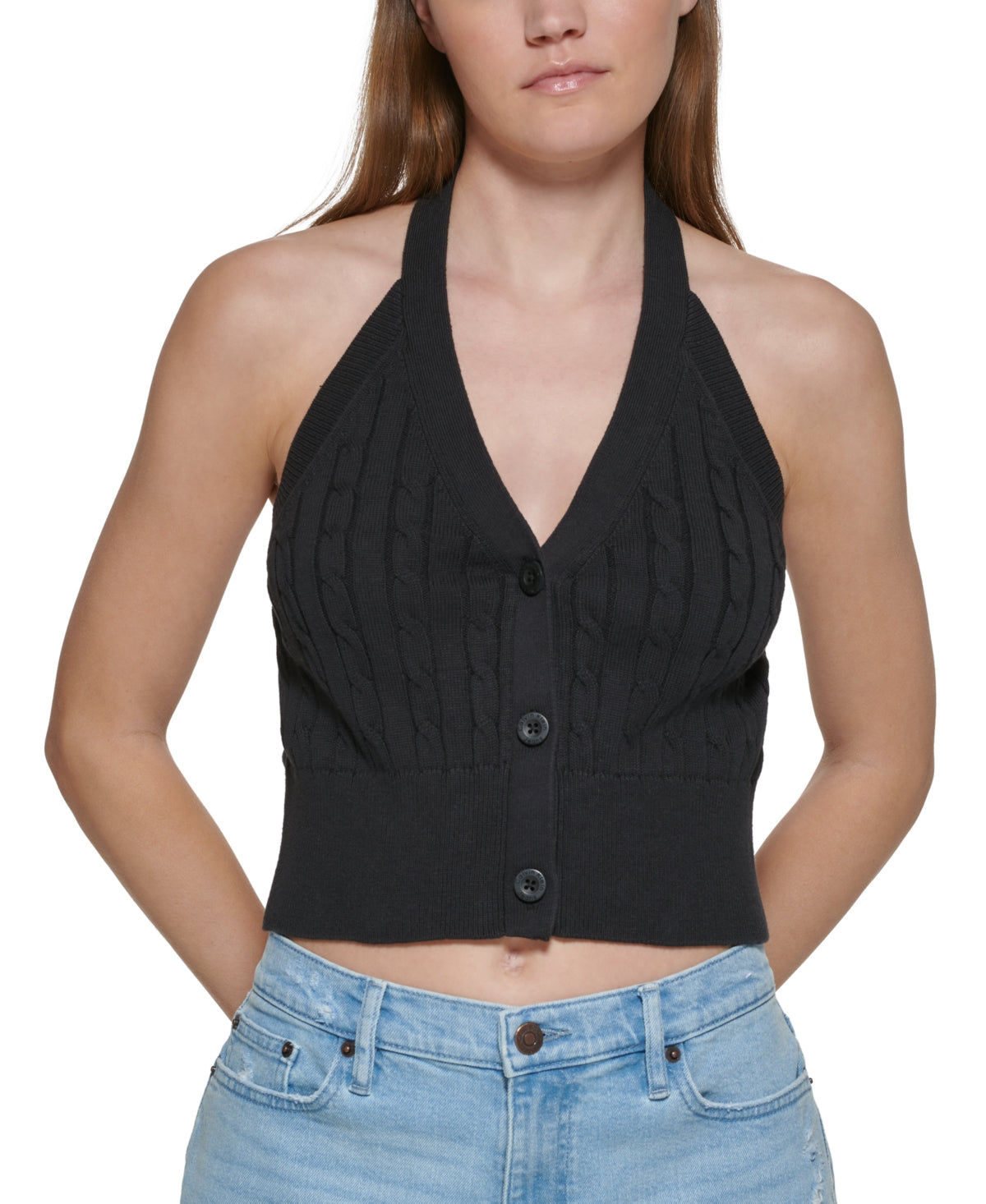 Calvin Klein Jeans Women's Cable Knit Cotton Halter Top Black Size X-Large