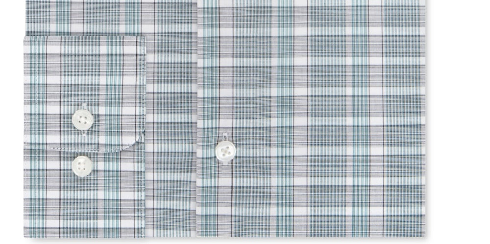 A classic fit; also known as a regular fit; offers a generous cut throughout the chest and waist for overall ease; features standard armholes and fuller sleeves|Non-iron|Point collar|Barrel button cuffs|Check pattern|Stretch performance; wicking fabric helps evaporate moisture