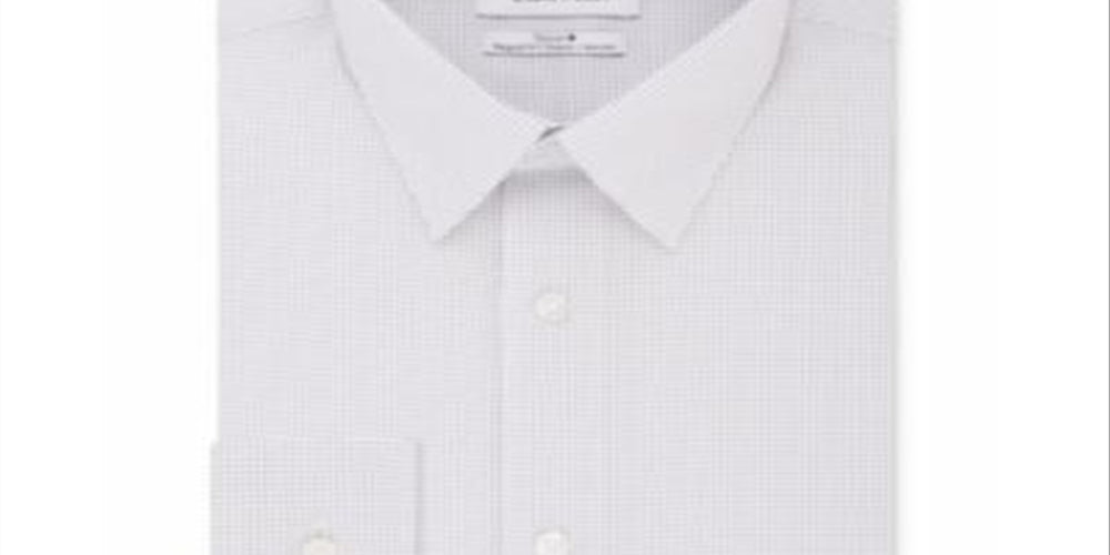 Calvin Klein Men's Steel Classic/Regular Fit Non-Iron Performance Stretch White Print Dress Shirt Men Men's Clothing - Dress Shirts