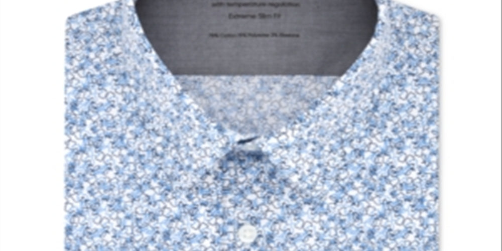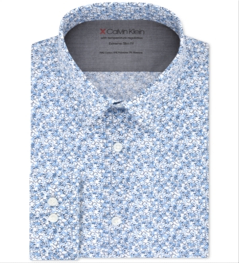 Calvin Klein Men's Extra Slim Fit Temperature Regulating Stretch Dress Shirts Blue Size 17.5x 32-33