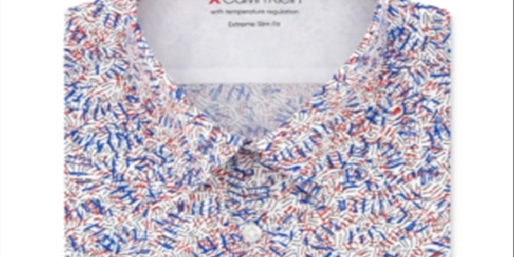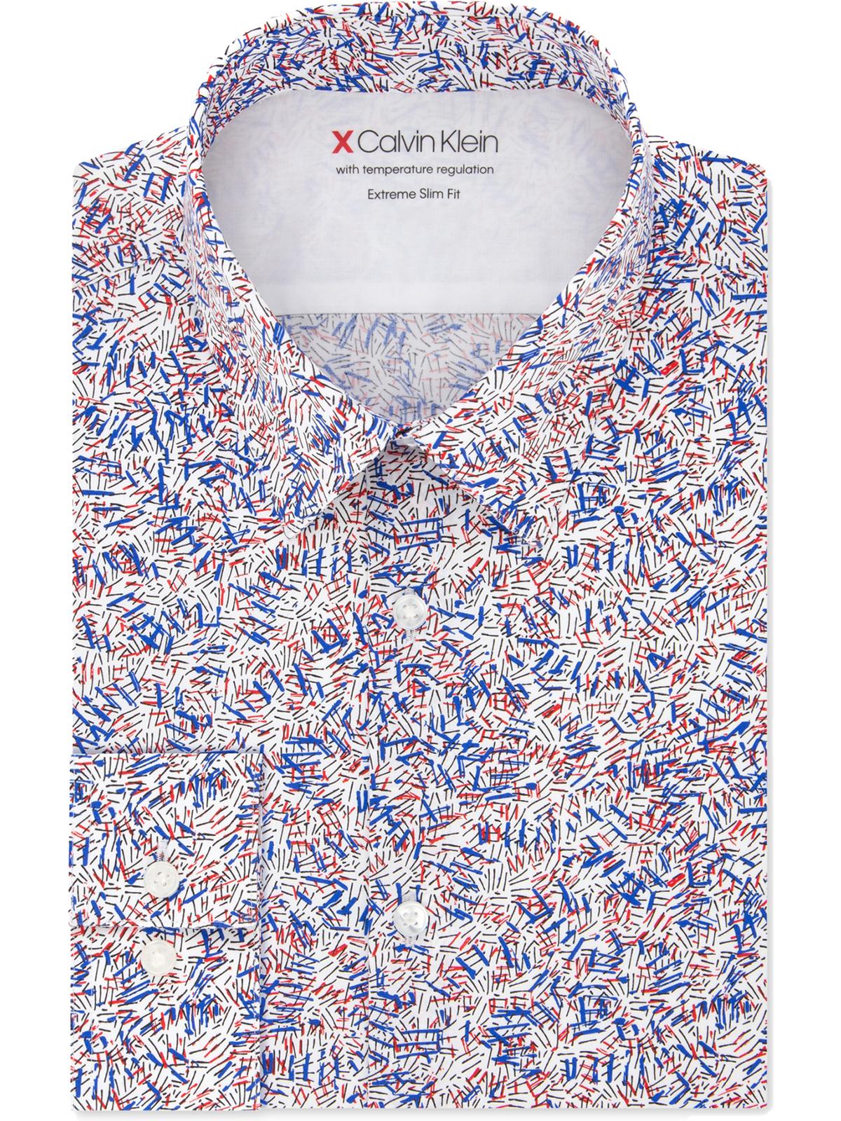 Calvin Klein Men's Extreme Slim Fit Printed Dress Shirt Red Size S (14-14/5)