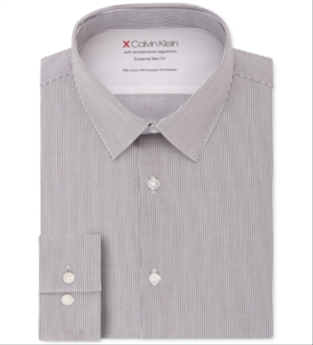Calvin Klein Men's Extreme Slim Fit Temperature Regulation Check Dress Shirt Gray Size XL