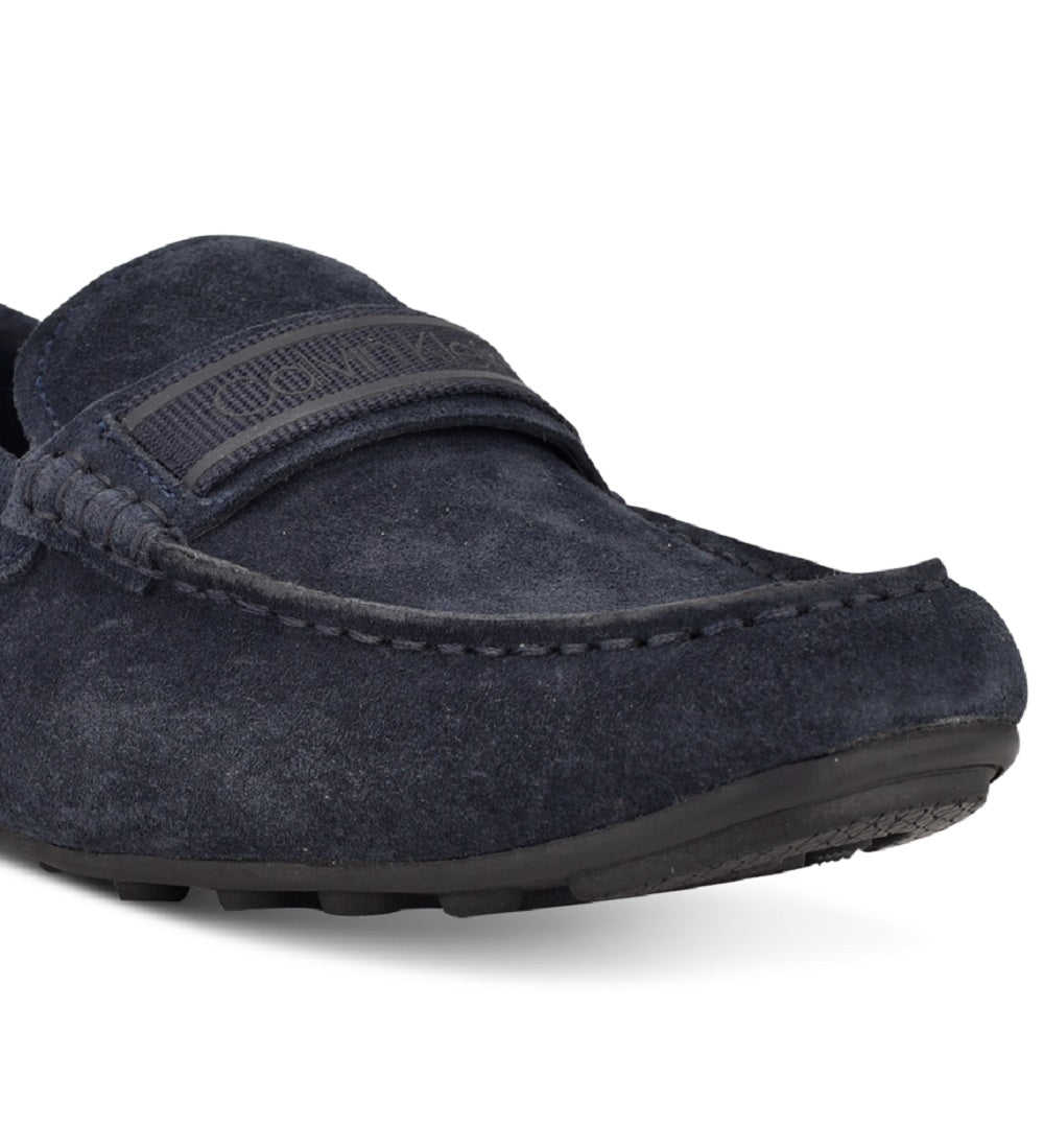 Shoe width- medium|Moc-toe slip-on loafers|Branding over vamp|Pull on| slip on closure|Square toe|Suede uppers; rubber sole