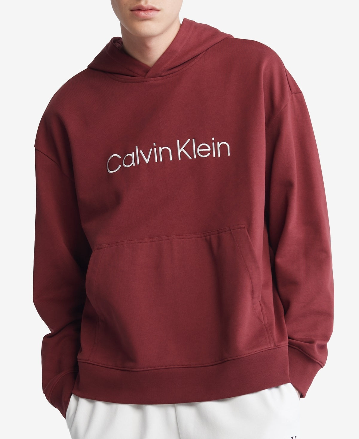 Calvin Klein Men's Relaxed Fit Standard Logo Terry Hoodie Red Size Medium
