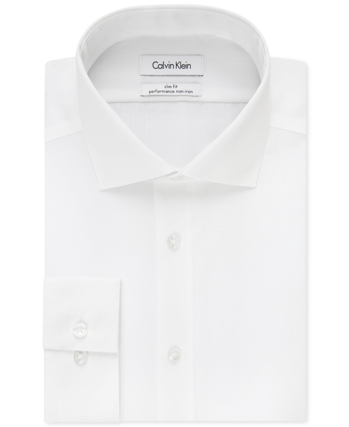 Calvin Klein Men's Slim Fit Non Iron Performance Spread Collar Herringbone Dress Shirt White Size 34X35