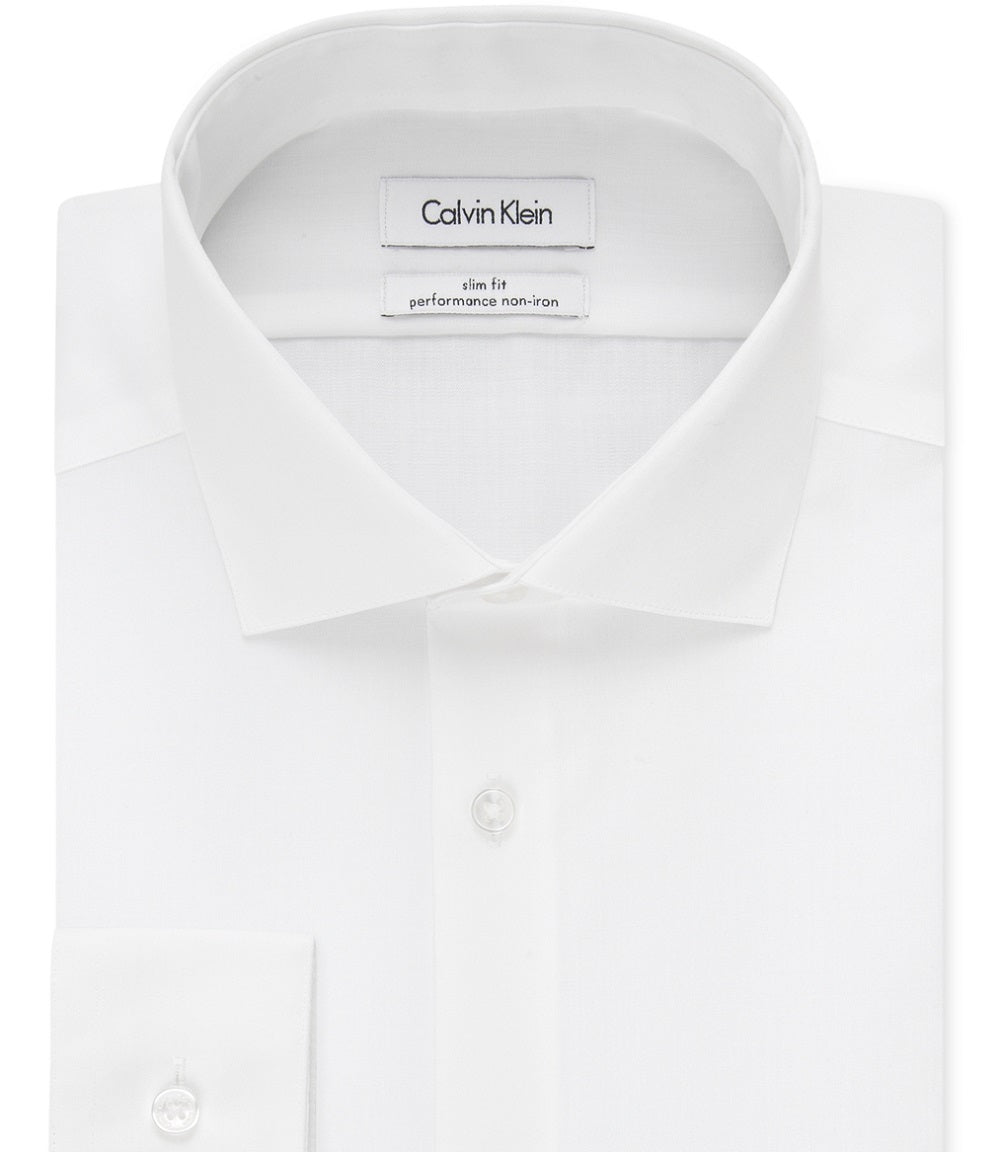 Spread collar; button cuffs|Also available in Point collar; shop Web ID 1649578|Imported|STANDARD 100 by OEKO-TEX® certified. Tested in an independent lab and verified to be safe from harmful substances 11.HUS.91085 HOHENSTEIN HTTI|Shop All Calvin Klein Dress Shirts|OEKO-TEX® Standard 100