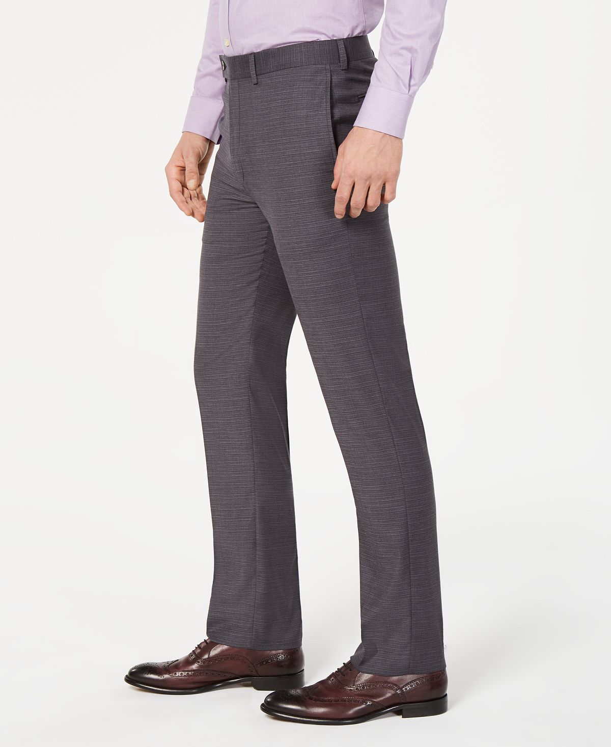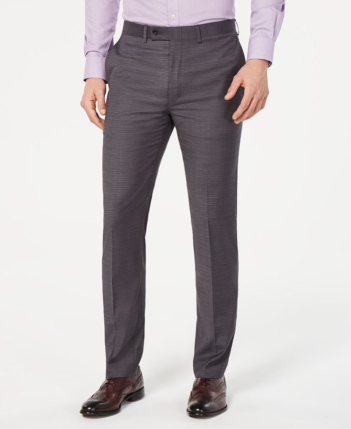 Calvin Klein Men's Slim-Fit Performance Stretch Wrinkle-Resistant Gray Mini-Grid Dress Pants Men Men's Clothing - Pants